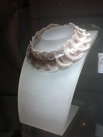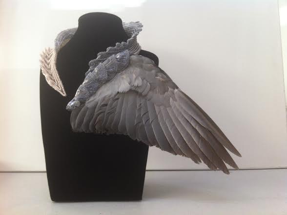 Wearable sculpture by artist designer Rachel Reilly. Precise craftsmanship has created these timeless and stunning wearable Art pieces.